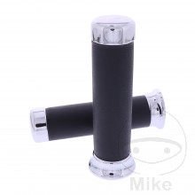 Domino grip guma Road- Barva: černá / chrom- Průměr řídítek: 22 mm- Délka: vlevo 145 mm- Vnitřní průměr: 22 mm vlevo, 24 mm vpravoGumová rukojeť má další vybrání pro připevnění bezpečnostního drátu.S pomocí bezpečnostního drátu již gumové rukojeti již neklouzají ani za špatného počasí.