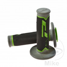 Gumová rukojeť Progrip 788. Gumy Progrip Extra Slim jsou vyrobeny ze tří různých pryžových materiálů. Díky tvrdému vnitřnímu materiálu se gumová rukojeť snadněji připevňuje na řídítka a tím brání sklouznutí. Střední gumová směs po stranách držadel umožňuje nejlepší možnou kontrolu nad motocyklem, zatímco měkká gumová směs zajišťuje, že jsou sníženy všechny vibrace vycházející z motocyklu. Tvrdý vnitřek gumové rukojeti a středně tvrdá pěnová příruba také zajišťují maximální přilnavost. Úchyty Progrip Extra Slim mají ve srovnání s jinými motokrosovými úchopy výrazně menší tloušťku vnější stěny - Zavřeno - Barva: zelená / šedá / černá - Průměr řídítek: 22 mm - Délka: 115 mm - Vnitřní průměr: 22 mm vlevo, 25 mm vpravo - Průměr perliček: 65 mm