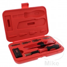 dvousložková rukojeť zaručuje bezpečnou manipulaci bez sklouznutí a umožňuje rychlou výměnu nožů4 různé čepele se speciálním výbrusem pro řezání bez poškozeníIdeální pro odstraňování zbytků lepidel, ochrany podvozku, kontrolních nálepek, zbytků těsnění motoru, např. hlavy válců, víka ventilů, jakož i zbytků těsnění při výměně oken automobilu apod.