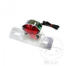 JMP mini zadní světlo Cat-Eye - Zadní světlo se značkou E - Chromované plastové pouzdro - Osvětlení SPZ - Hliníkový držák poznávací značky - Žárovka: 21/5 W - Sklo: červené - Šířka: 65 mm - Výška: 40 mm - Hloubka: 40 mm - Rozteč otvorů: 37 mm